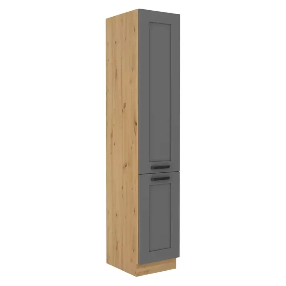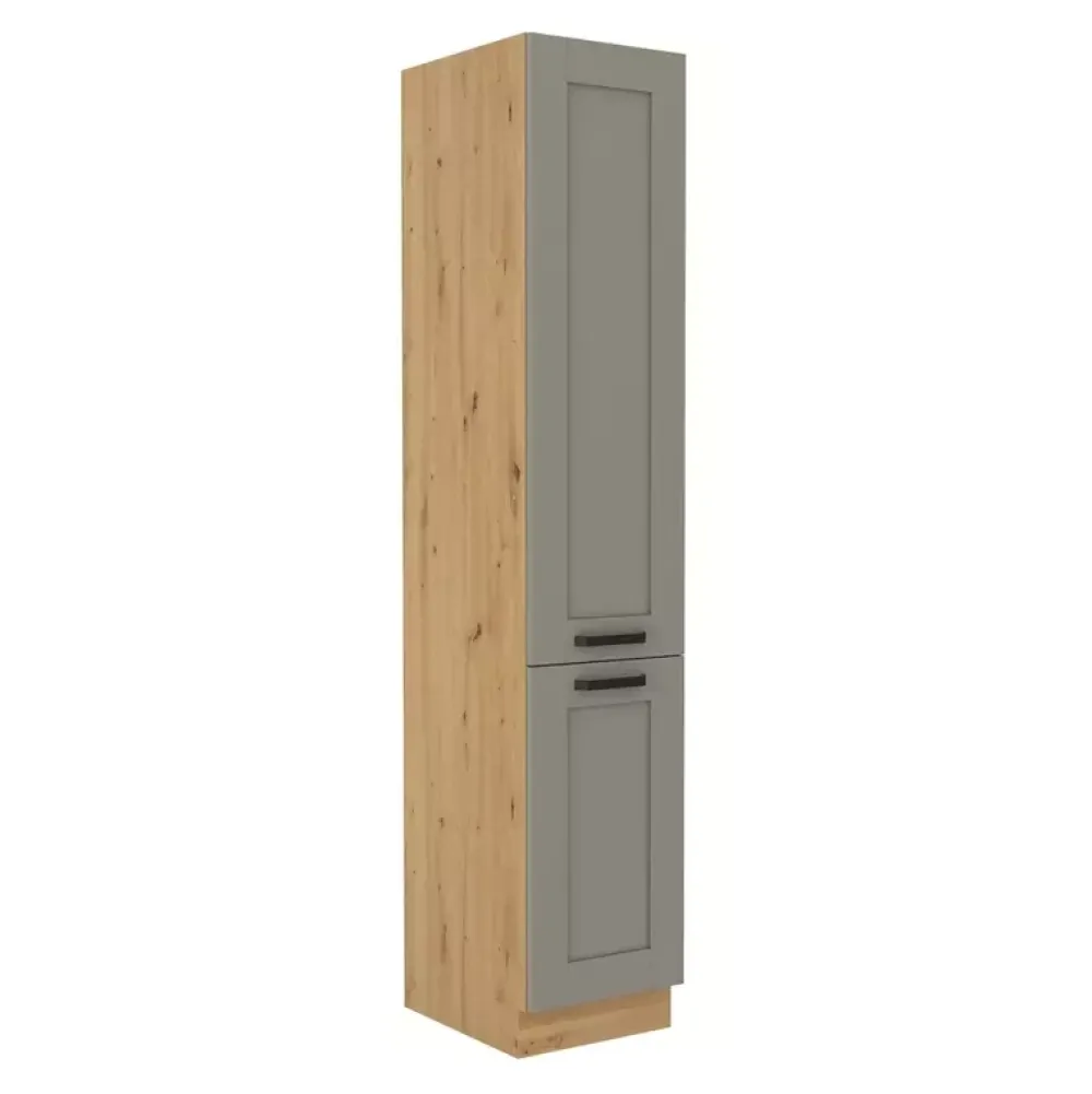 Wysoka szafka kuchenna AWINION ma 40 cm szerokości i wyposażono ją w pięć półek z płyty laminowanej z możliwością regulacji wysokości. Zawiasy posiadają system cichego domykania, co gwarantuje delikatne zamykanie i otwieranie drzwi. Szafka opiera się na cokole w kolorze korpusu. Wybierz odpowiadający Ci kolor korpusu i frontów, klikając przycisk „Dopasuj i kup”.