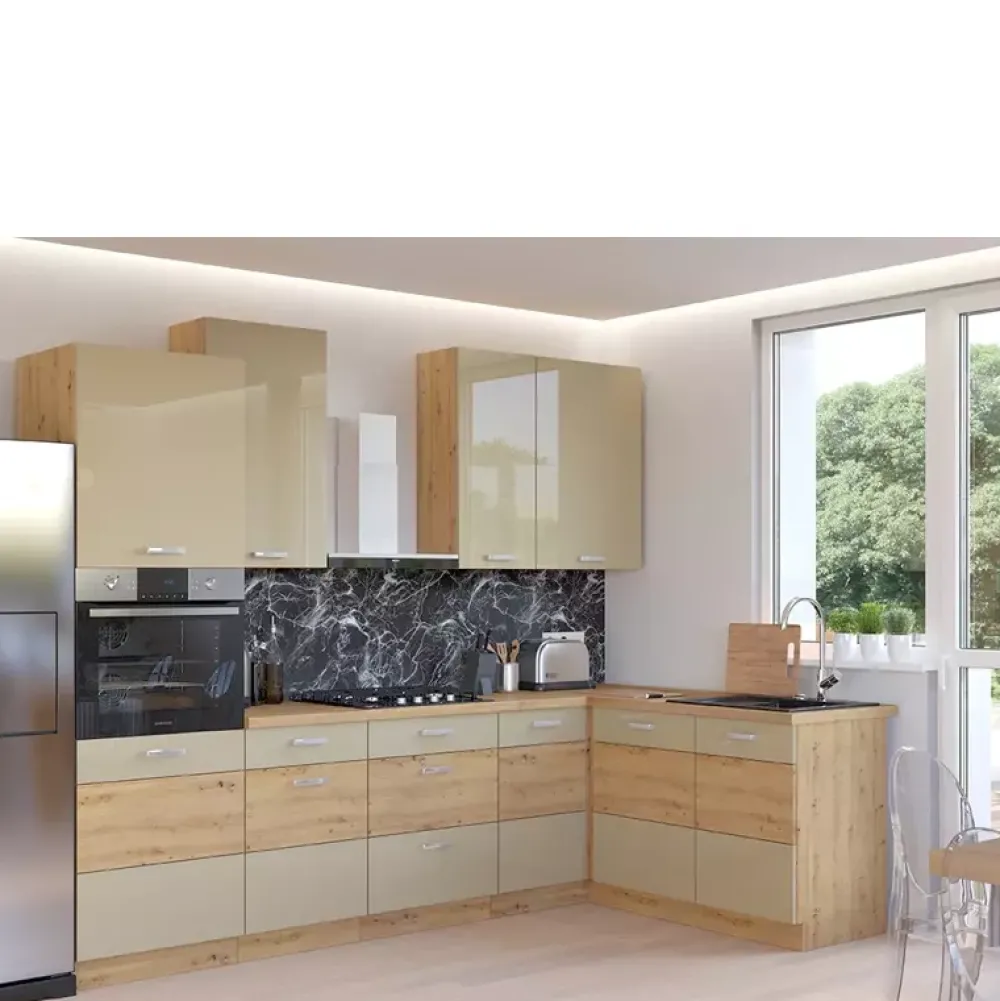 - Fronty: MDF Cappucino połysk / PCV Cappucino połysk / Dąb Artisan,