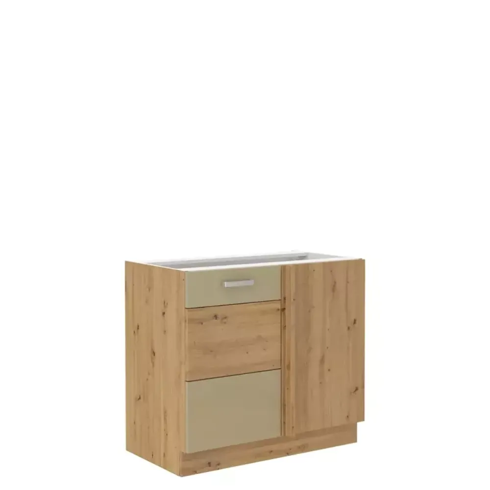 kod: 60 D 3S BB, wymiary szer. 60 cm, wys. 82 cm, gł. 52 cm - Narożna szafka kuchenna o szerokości 90 cm