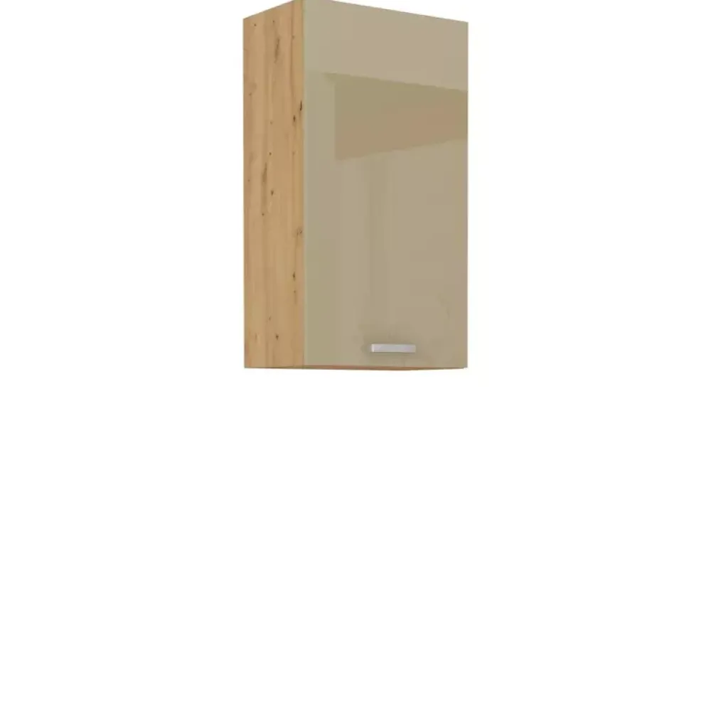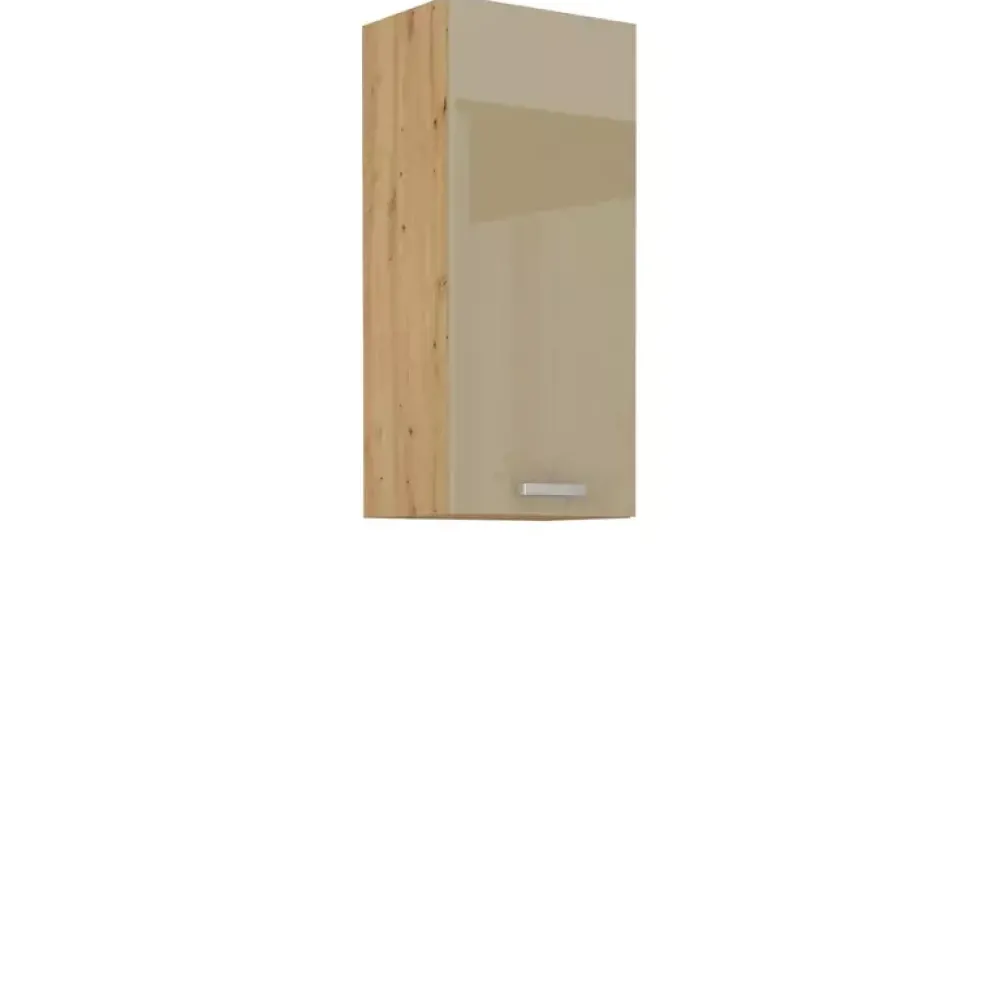 - Front: – MDF 16mm Cappucino połysk / płyta laminowana Dąb Artisan.