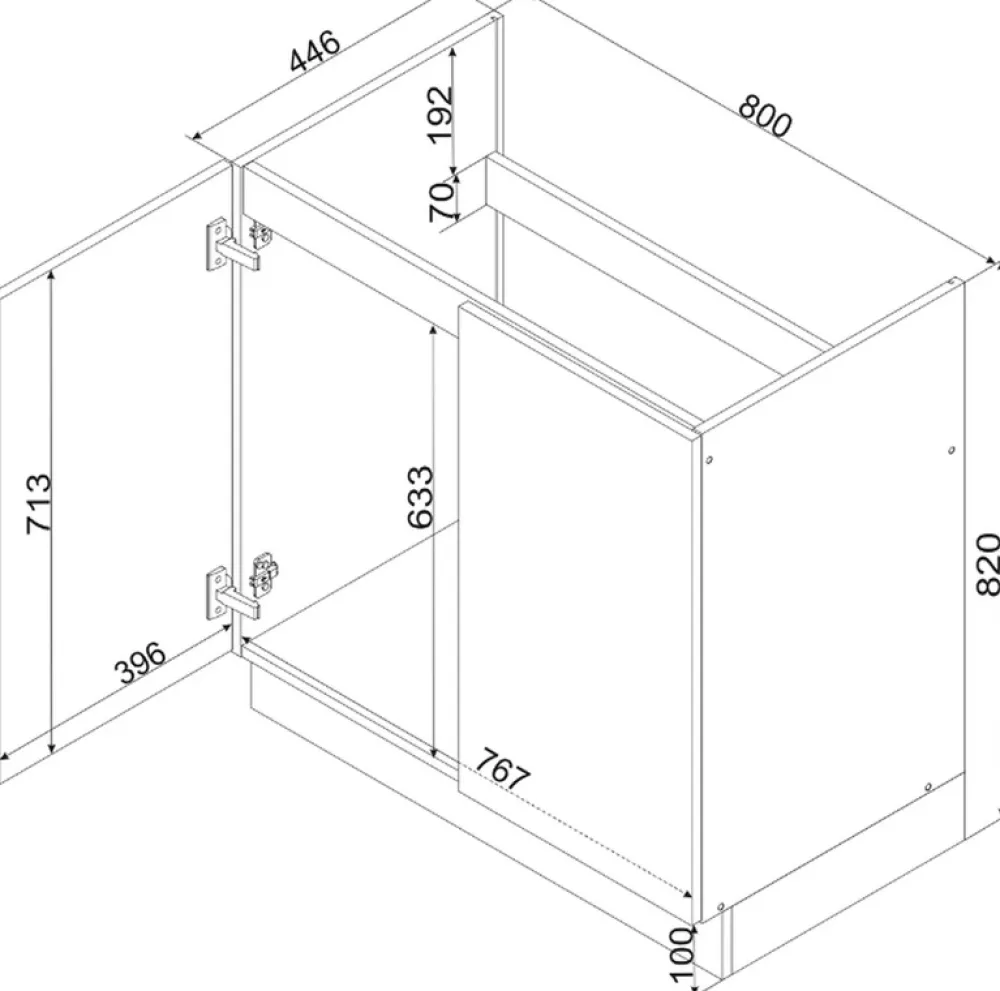 - W szafkach zostały zastosowane metalowe zawiasy puszkowe, które gwarantują cichą i bezawaryjną pracę.