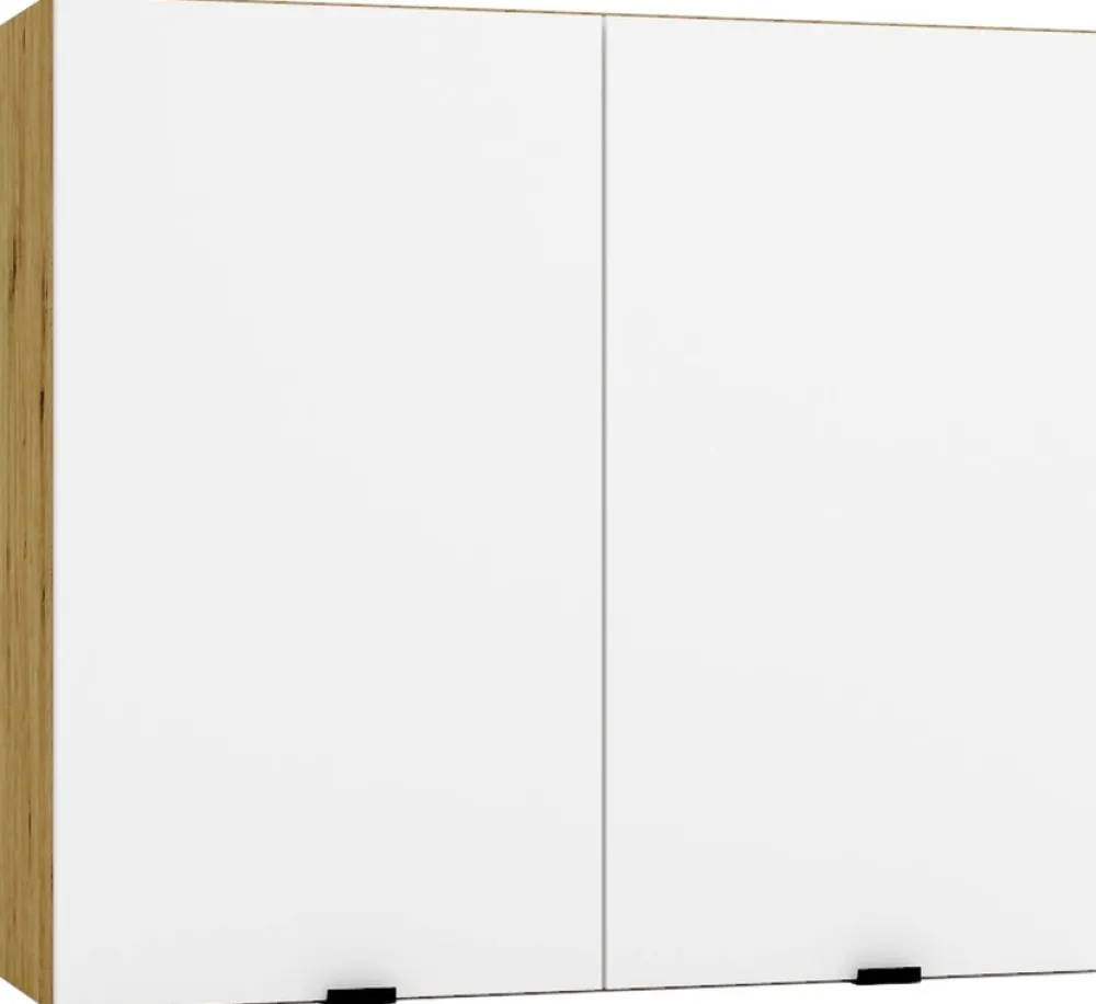 Zestaw mebli kuchennych o szerokości 200 cm GIANNA to rozwiązanie dla osób ceniących nowoczesny design i praktyczne układy przestrzenne. Górne szafki tworzą harmonijną kompozycję, zapewniając miejsce na przechowywanie wszystkich najważniejszych akcesoriów. Szafka z okapem o szerokości 60 cm nadaje kuchni estetyczny wygląd, a sąsiadująca szafka jednodrzwiowa z półką, również o szerokości 60 cm, świetnie sprawdzi się na przyprawy i małe naczynia. Wisienką na torcie jest szafka dwudrzwiowa o szerokości 80 cm, zapewniająca dodatkową pojemność na wszystkie kuchenne skarby.