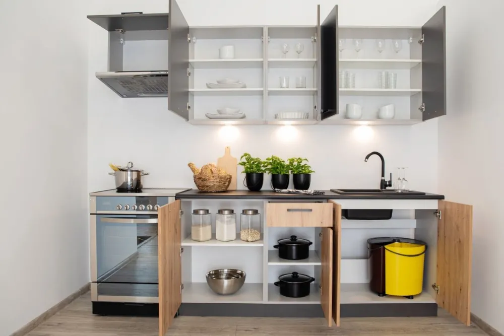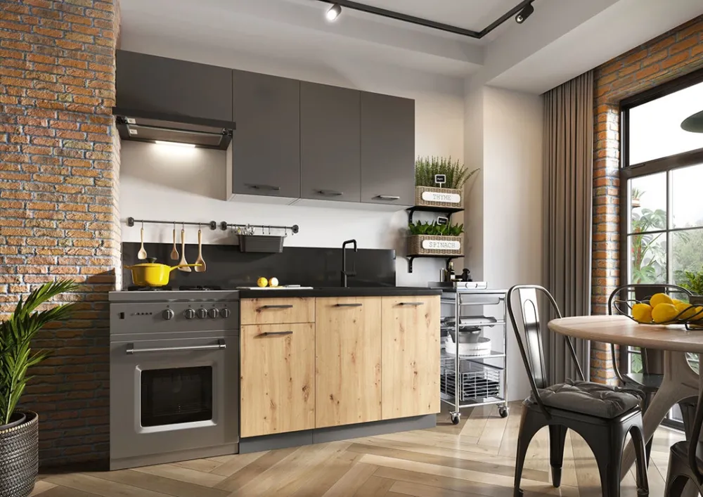 Odcienie drewna i grafitu dodają wnętrzom lekkości i nowoczesności, tworząc harmonijną całość ze strefą dzienną. Bez względu na to, czy urządzasz małą kuchnie w bloku, czy duży salon z kuchnią, szafki kuchenne na sztuki powinny wzbudzić Twoje zainteresowanie.