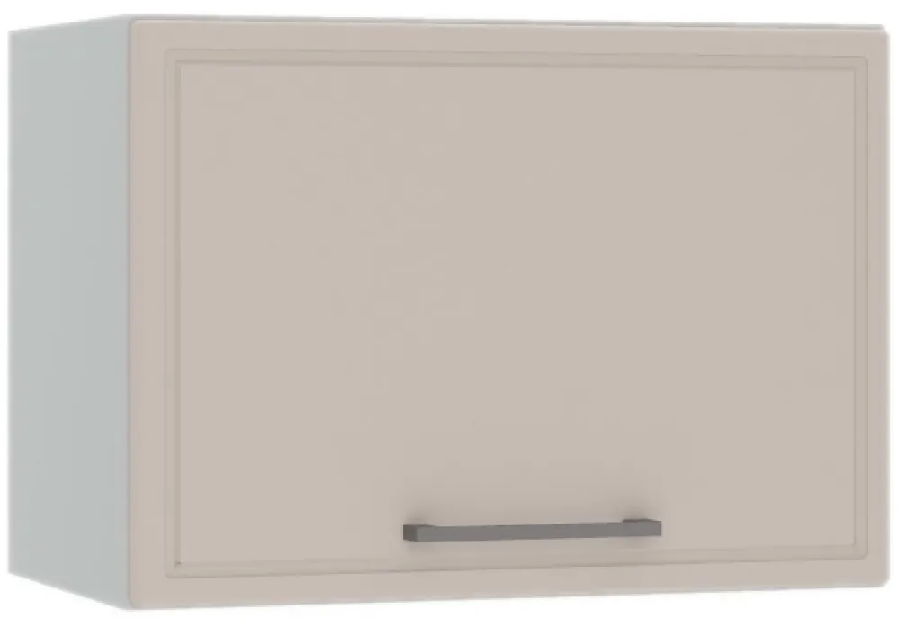 - Wisząca szafka kuchenna BRIT została wyposażona w drzwi z podnośnikami gazowymi, za którymi znajduje się przestrzeń, którą można wykorzystać do przechowywania przypraw, talerzy i nie tylko. Fronty wykonano z trwałej płyty MDF, natomiast uchwyty z metalu.