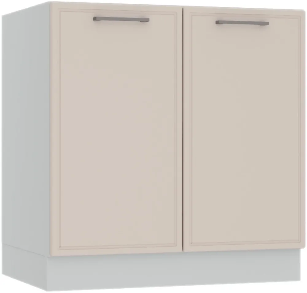 - Fronty wykonano z solidnej płyty MDF o grubości 16 mm w kolorze beżowym, z matowym wykończeniem.