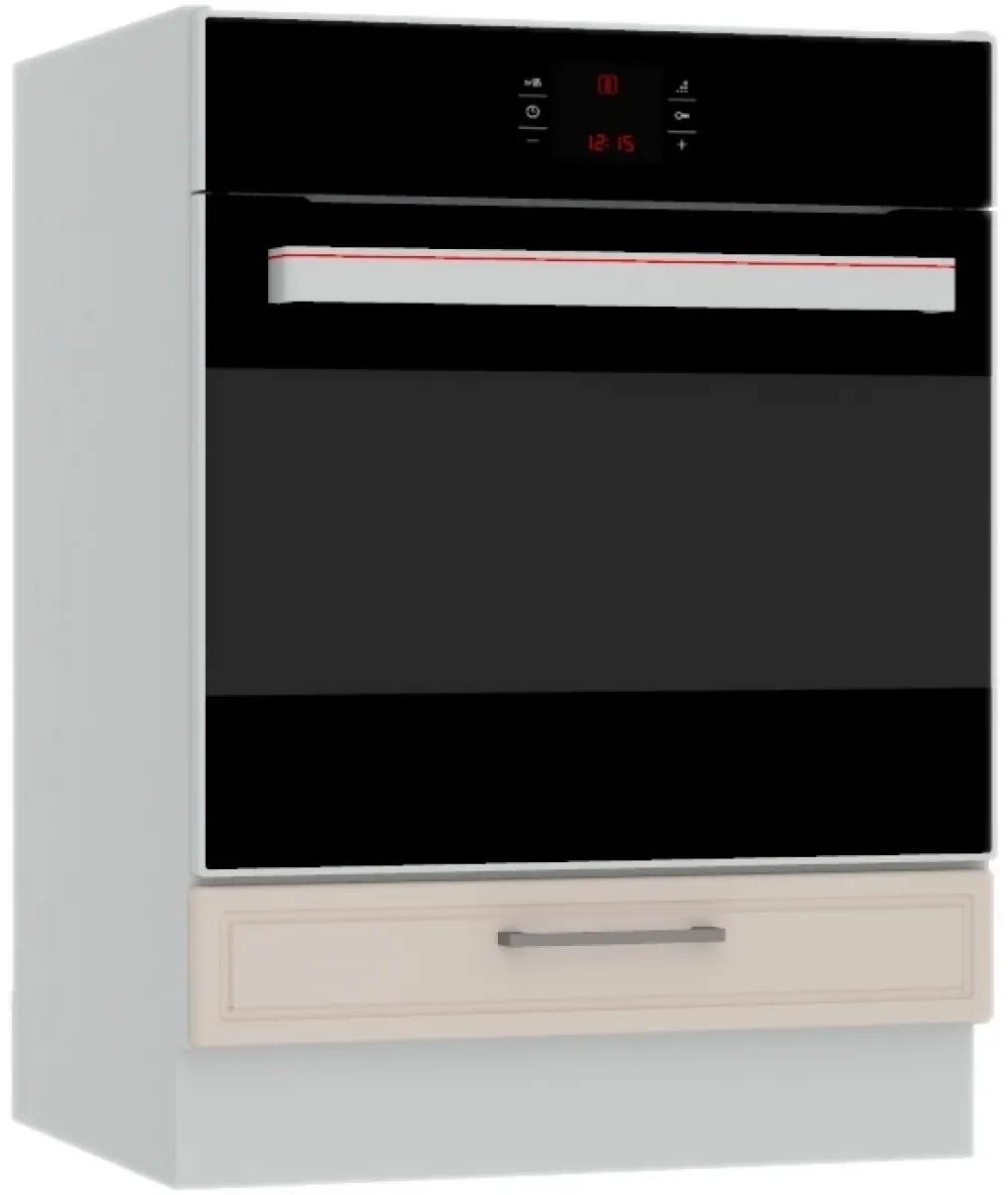 - Fronty wykonano z solidnej płyty MDF o grubości 16 mm w kolorze beżowym, z matowym wykończeniem.