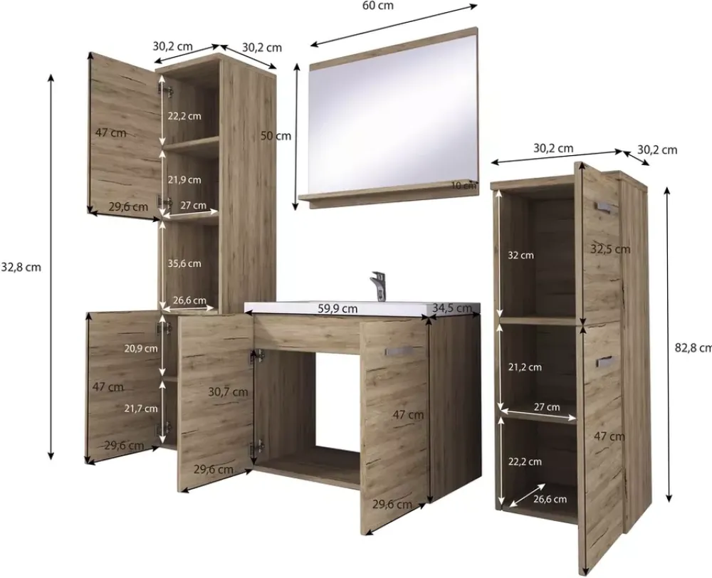 Szafka pod umywalką dysponuje wystarczającą ilością miejsca na dodatkowe ręczniki, podczas gdy nasze wysokie słupki z mnóstwem praktycznych półek stworzą doskonałą przestrzeń dla Twoich kosmetyków i środków czystości.
