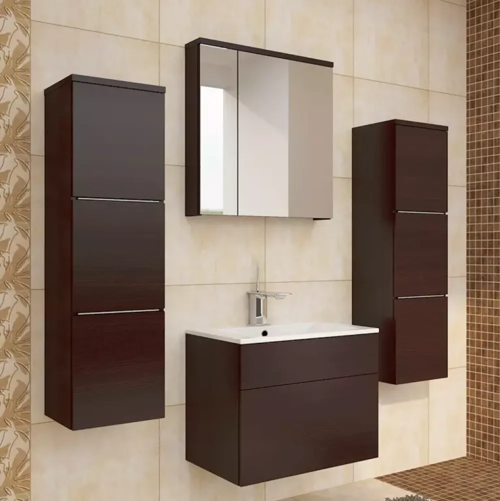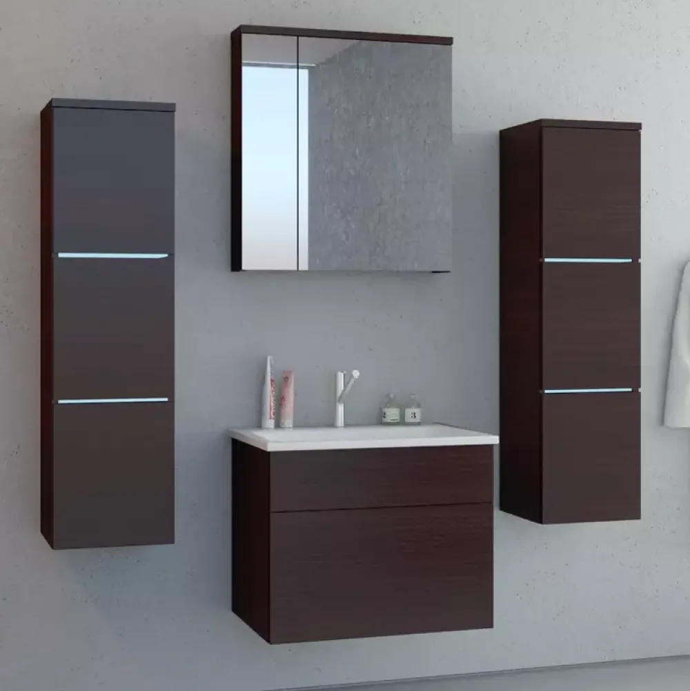 - dwóch pionowych szafek wiszących, szafki pod umywalkę i szafki wiszącej z lusterkiem.
