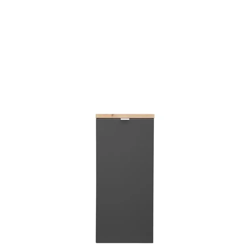 - Kosz na pranie schowany w wygodnej szafce wiszącej spójnej z całą kolekcją mebli CHARM. Doskonałe rozwiązanie pozwalające uniknąć szpecących aranżację koszy wolnostojących.
