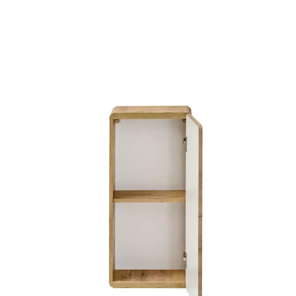 Wisząca szafka łazienkowa AURELIO została wykonana w nowoczesnej stylistyce, dzięki której stanowi ponadczasowe rozwiązanie. Szafka posiada drzwi umieszczone na zawiasach wzbogaconych o bezgłośny mechanizm cichego domyku, za którymi znajdują się dwa poziomy na drobne akcesoria łazienkowe.
