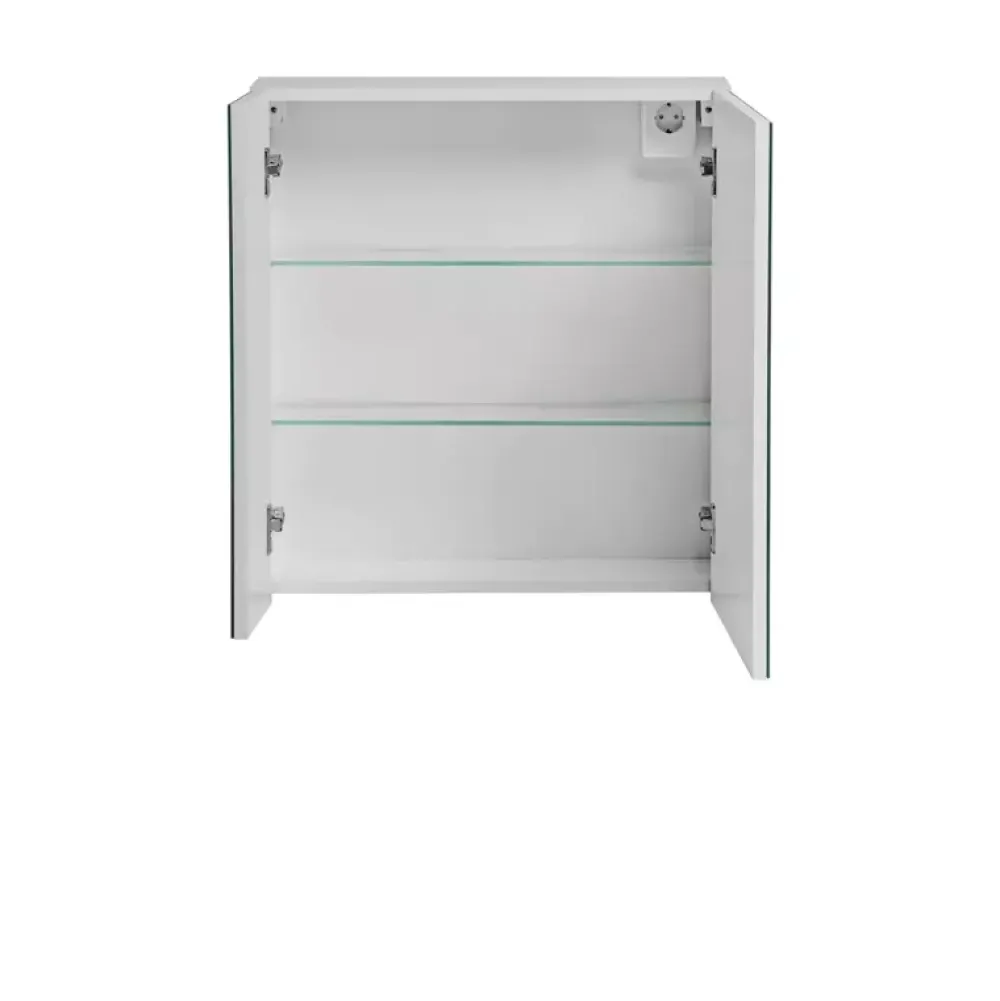 Szafka wisząca LOSELANI została wyposażona w parę drzwi z lustrem umieszczonych na zawiasach wzbogaconych bezgłośnym systemem cichego domyku. Za drzwiami szafki znajdują się trzy poziomy, w skład których wchodzą dwie półki wykonane ze szkła hartowanego, które doskonale sprawdzą się do przechowania akcesoriów higieny osobistej. Dodatkowo nowoczesna stylistyka szafki sprawia, że odnajduje się ona we współczesnych aranżacjach łazienek.