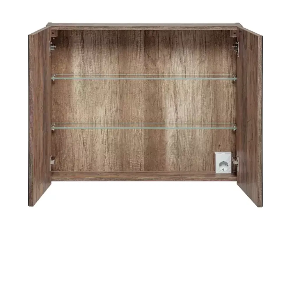 Szafka wisząca z lustrem SANTELI została wyposażona w parę drzwi z lustrem, za którymi znajdują się dwa poziomy na rozmaite akcesoria, które tam umieszczone zyskają odrobinę prywatności. Drzwi szafki osadzono na zawiasach wzbogaconych bezgłośnym systemem cichego domyku. Natomaist sama nowoczesna stylistyka szafki sprawia, że tworzy ona ponadczasowe rozwiązanie.