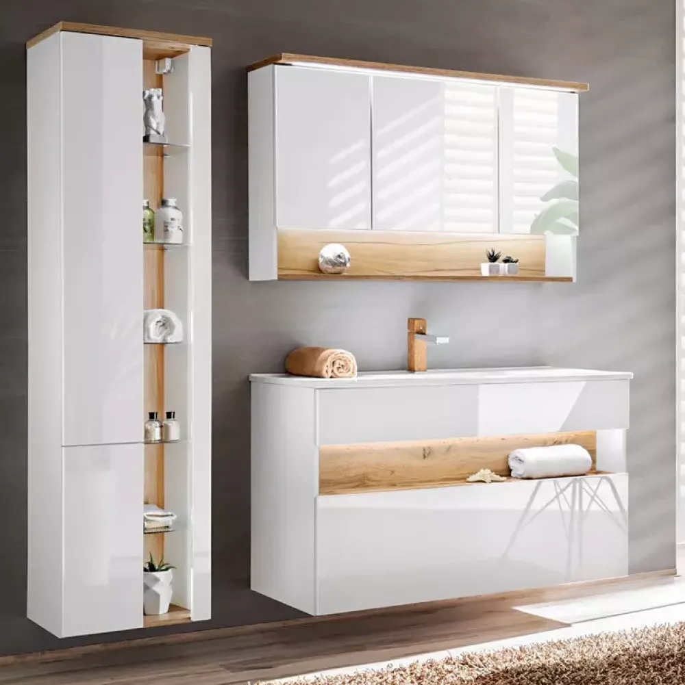 Szafka wisząca BELASSO to propozycja wykonana w nowoczesnej stylistyce, która czyni z niej ponadczasowe rozwiązanie pozwalające umeblować łazienkę własnych marzeń. Szafka posiada liczne półki znajdujące się za jej drzwiami, na których możesz umieścić tekstylia oraz rozmaite akcesoria. Dodatkowo została wyposażona w półki wykonane ze szkła hartowanego na których możesz umieścić swoje dekory oraz rozmaite akcesoria.