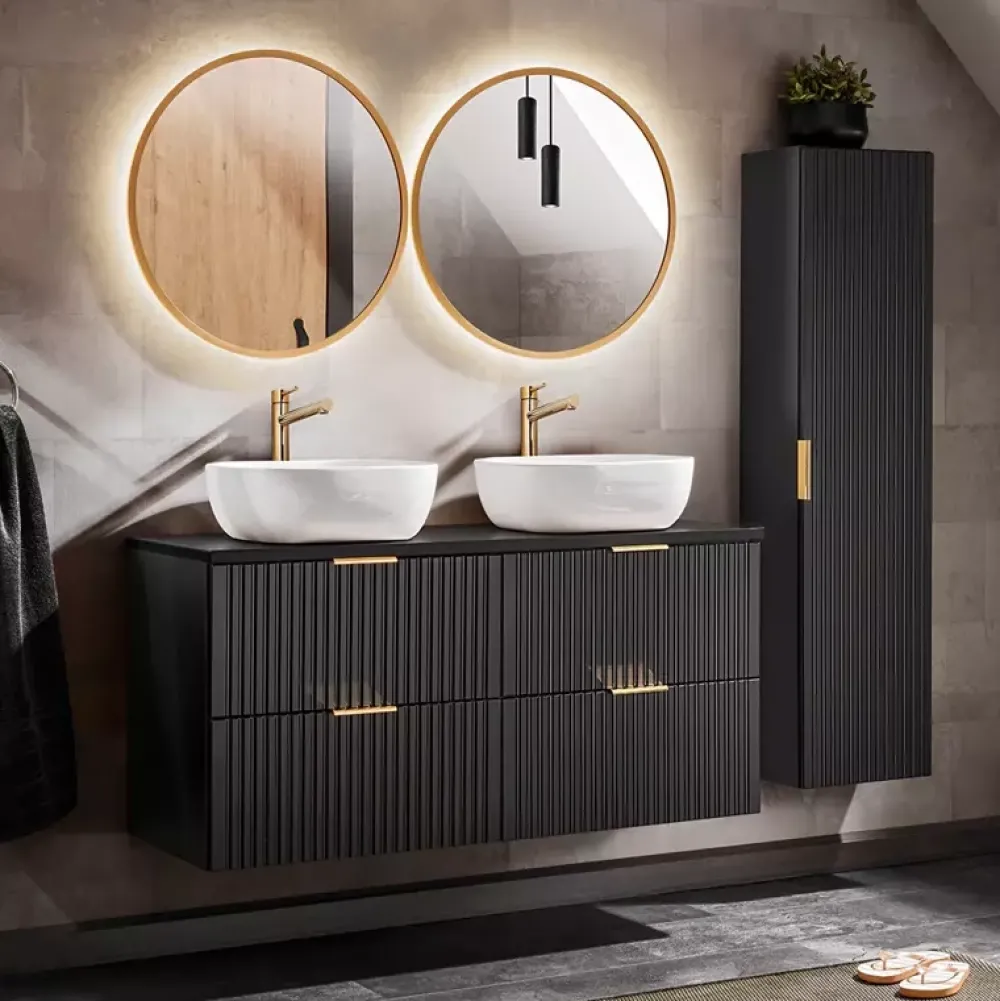 Szafka pod umywalkę ADENILO została wykonana w nowoczesnej oraz eleganckiej stylistyce, dzięki której doskonale wpisuje się we współczesne aranżacje łazienkowe. Szafka została wyposażona we dwie pojemne szuflady osadzone na prowadnicach wzbogaconych bezgłośnym mechanizmem cichego domyku, w których znajdziesz miejsce na swoje akcesoria oraz środki czystości.
