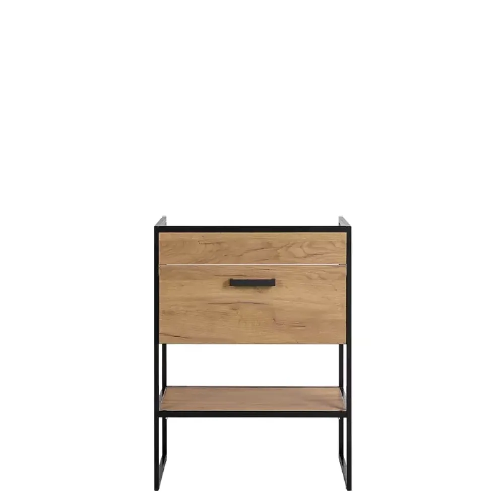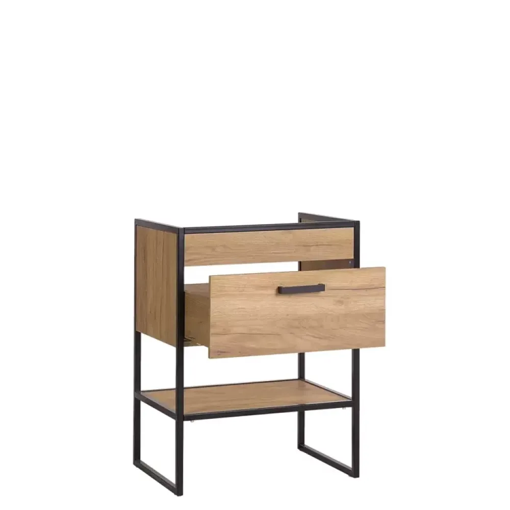 - Szafka pod umywalkę wpuszczaną w stylu loftowym wykonana z płyty laminowanej w kolorze dąb craft złoty.
