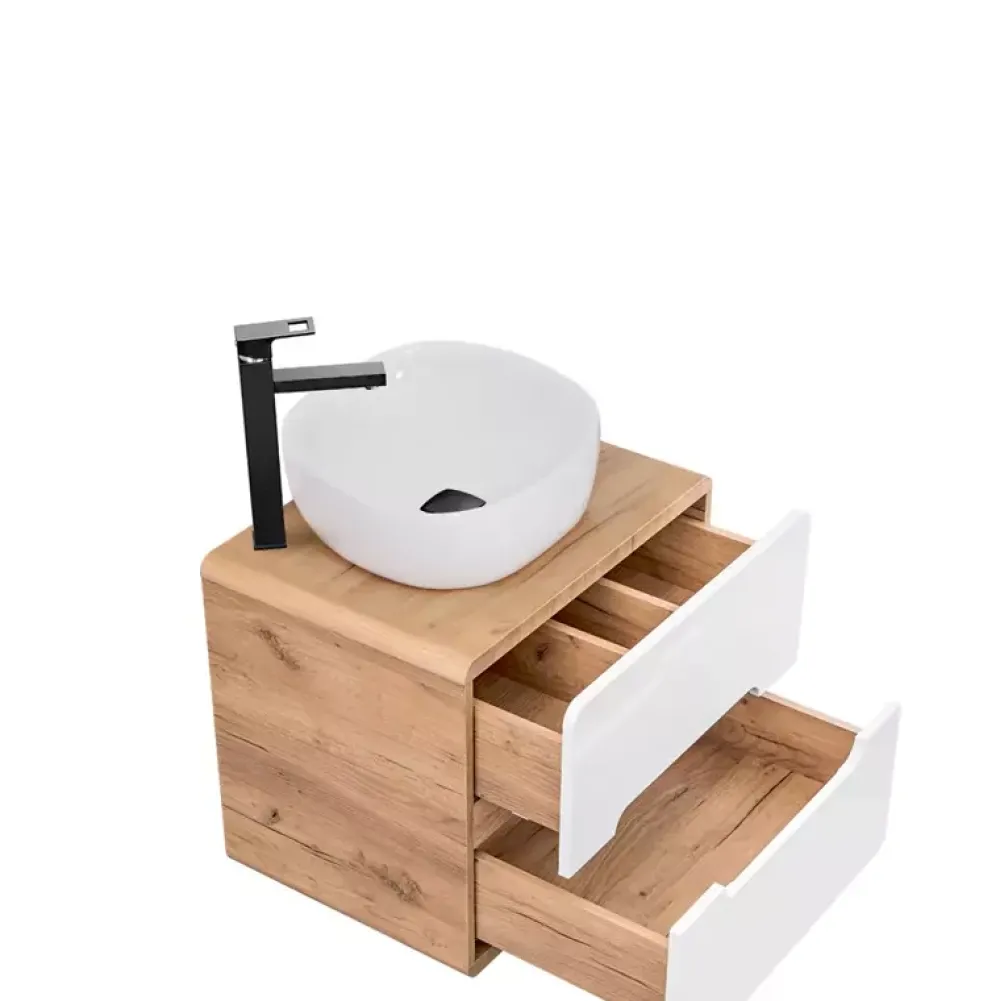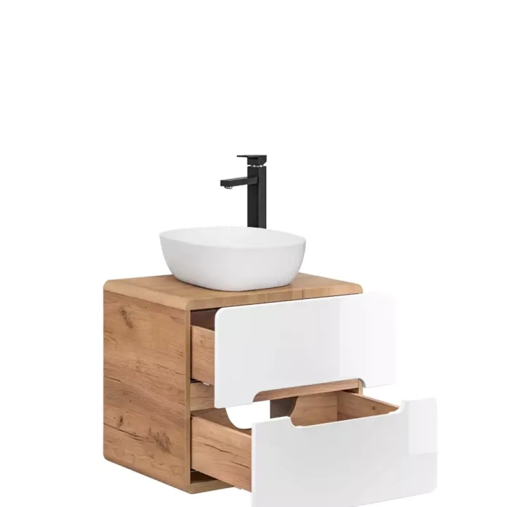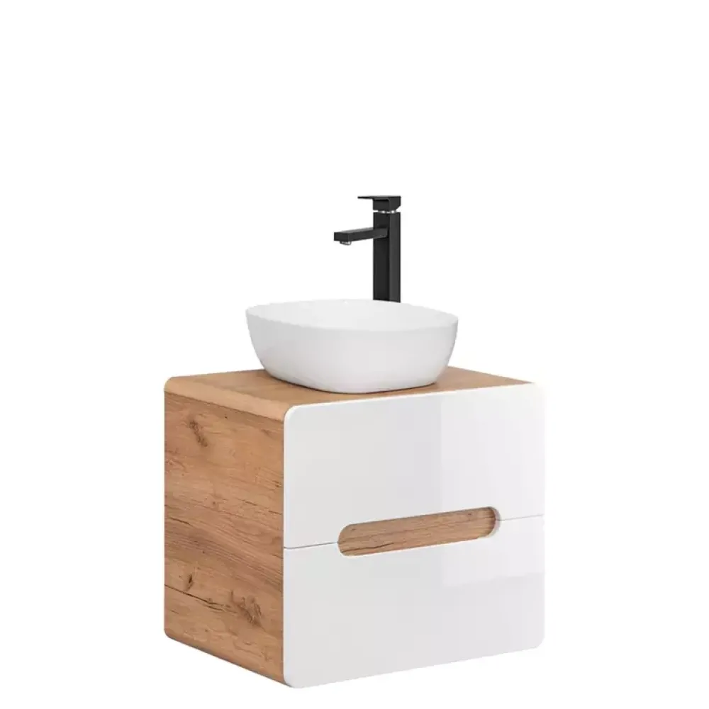 - Wisząca szafka pod umywalkę nablatową AURELIO o szerokości 60 cm została wyposażona we dwie szuflady umieszczone na prowadnicach wzbogaconych o bezgłośny system cichego domyku, w których znajdziesz miejsce na swoje akcesoria.