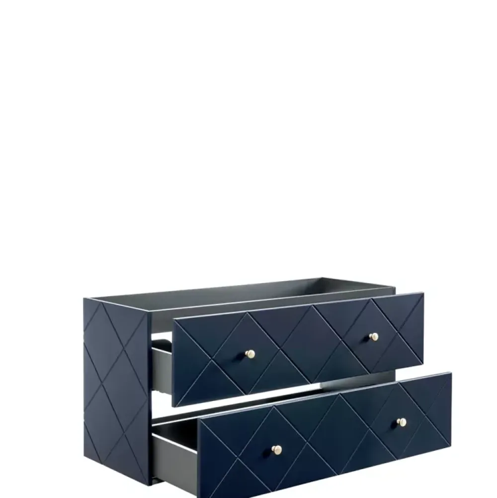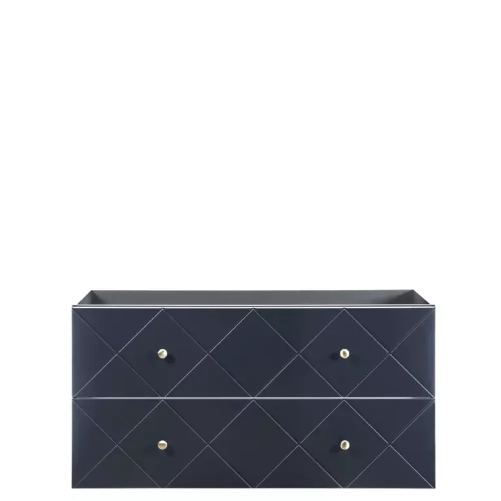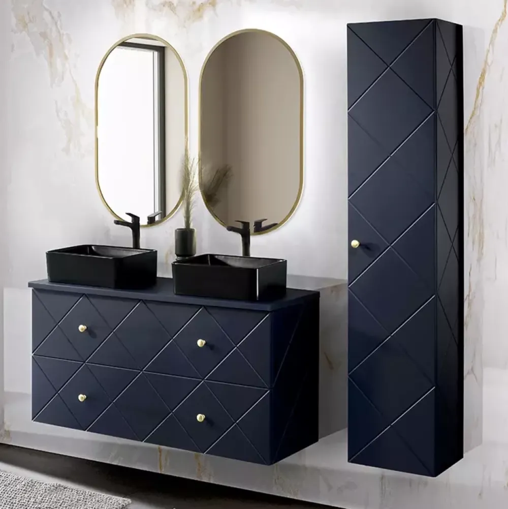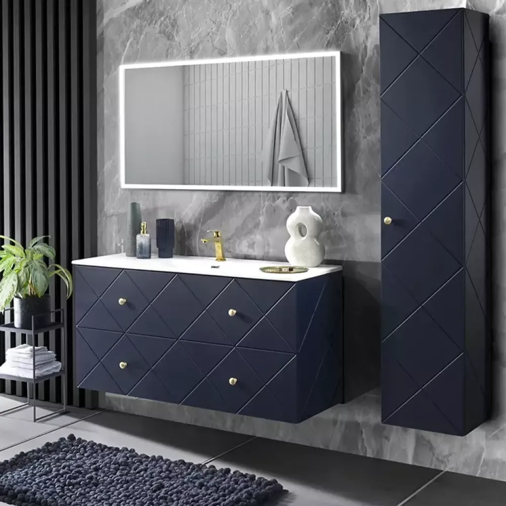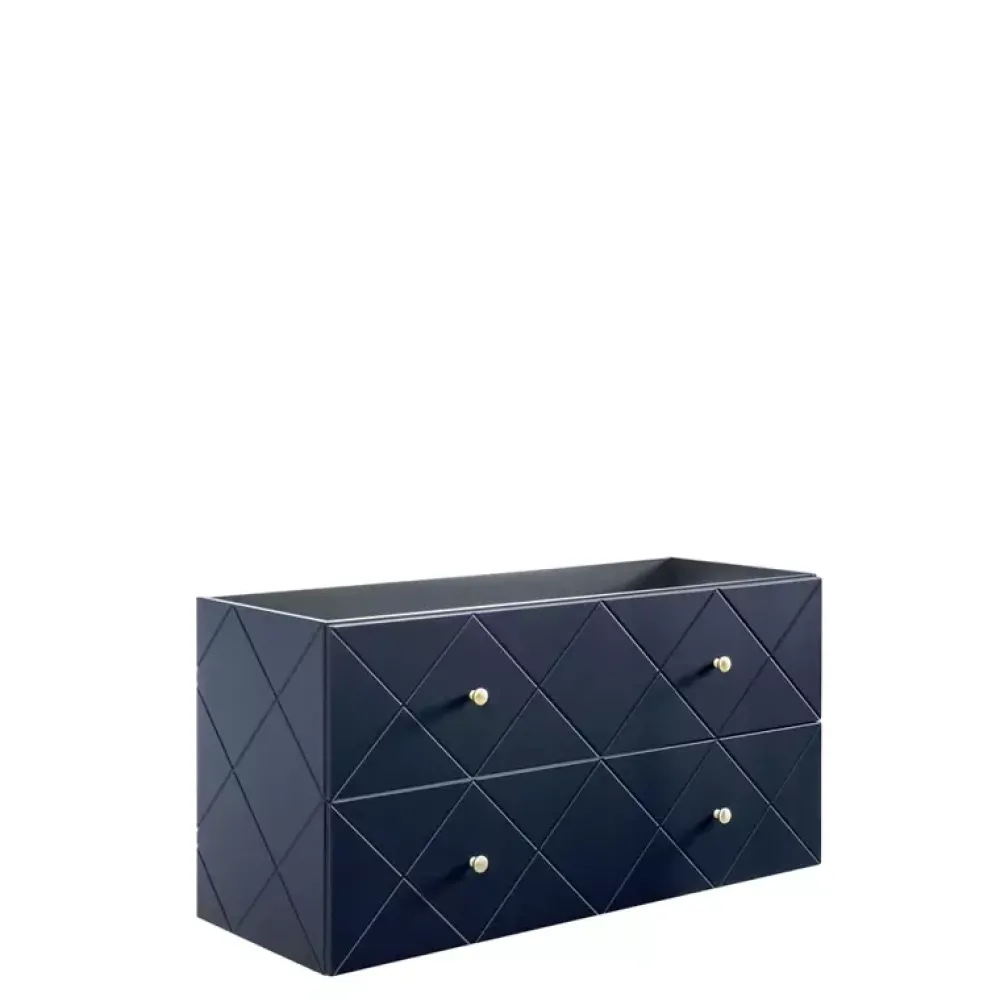 Szafka wisząca ELANISE została wykonana w wyjątkowej oraz ponadczasowej stylistyce, która poprzez frezowany front oraz korpus doskonale odnajduje się w nowoczesnych aranżacjach łazienkowych. Szafka doskonale sprawdzi się do umieszczenia umywalki wpuszczanej, jak i nablatowej po doposażeniu w dedykowany blat znajdujący się w sekcji „POLECANE”. Szafka pod umywalkę posiada dwie szuflady, w których znajdziesz miejsce na środki czystości. Dodatkowo uchwyty szafki wykonano z aluminium ze złotym wykończeniem.