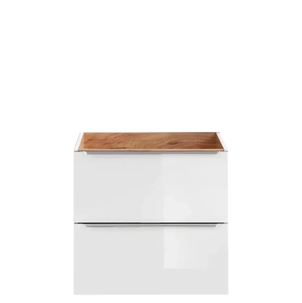 - Szuflady wyposażono w subtelne metalowe uchwyty krawędziowe.