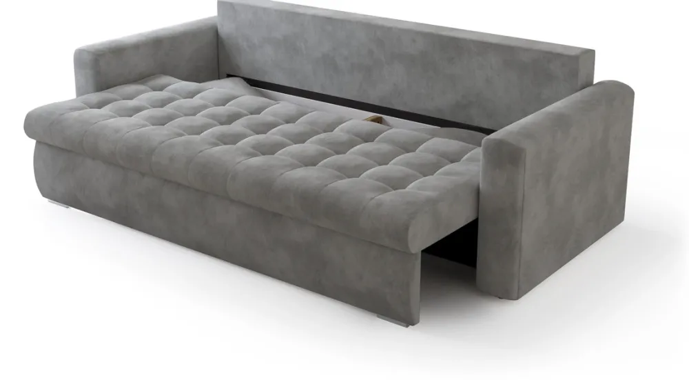 - Kanapa do salonu LUIS posiada siedzisko na bazie sprężyn bonell oraz pianki PUR, co gwarantuje wysoki komfort wypoczynku. Pod siedziskiem zastosowaliśmy głęboki pojemnik na pościel i poduszki. Siedzisko posiada głębokie pikowania.