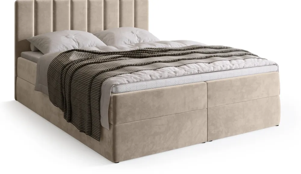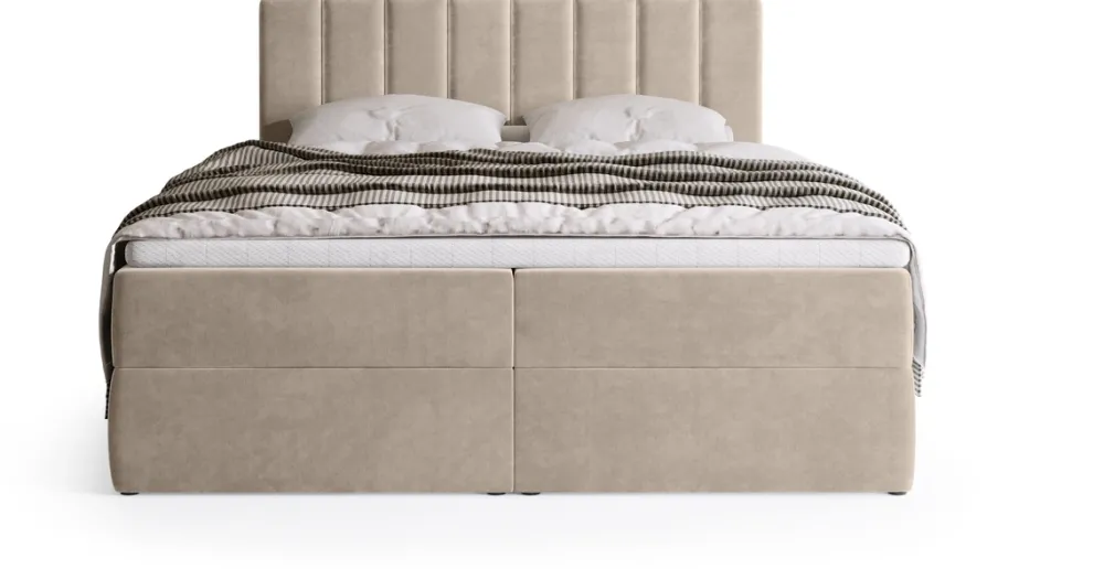 Meble Młodzieżowe|Łóżka Młodzieżowe>BROMARKT Beżowe łóżko kontynentalne 140x200 cm z pojemnikiem DENVER