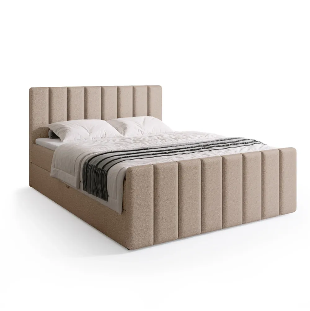 Meble Młodzieżowe|Łóżka Młodzieżowe>BROMARKT Beżowe łóżko kontynentalne do sypialni 140x200 cm z pojemnikiem DENVER DUO