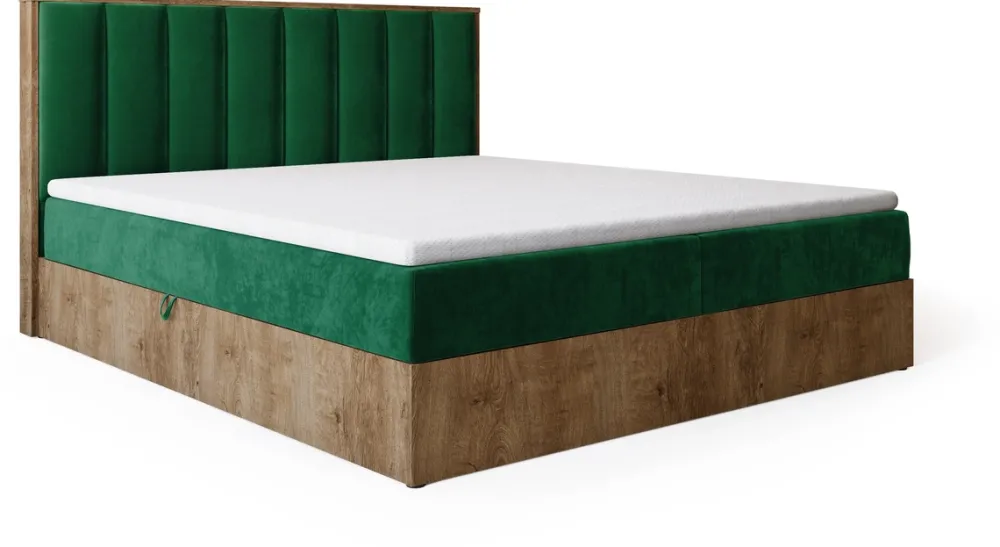 - Łóżko kontynentalne LOFT II w kolorze dąb lefkas 140×200 cm wyposażone jest w materac ze sprężynami bonell odpornymi na odkształcenia i pianką PUR. Pod nim znajdują się dwa pojemniki na pościel z mechanizmem ułatwiającym otwieranie. Tkanina Kronos 19