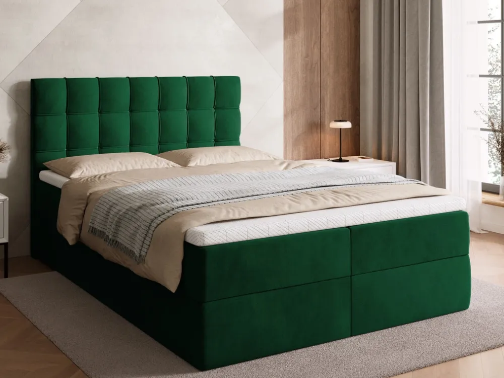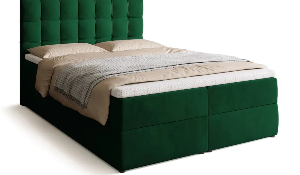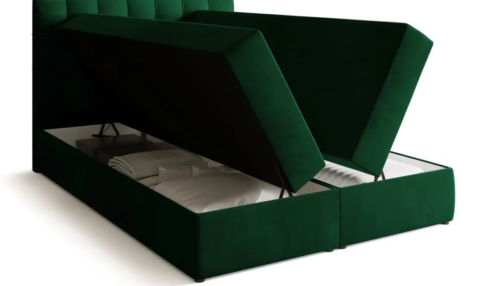 Łóżko kontynentalne do sypialni posiada dwa pojemniki na pościel, które pozwalają na przechowanie pościeli i nie tylko. Automat sprężynowy wspomaga otwieranie pojemnika, co czyni dostęp do jego zawartości prostym i komfortowym.
