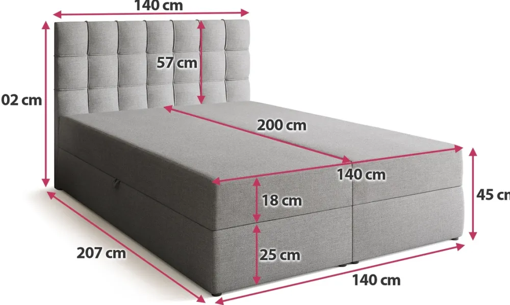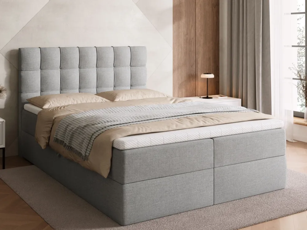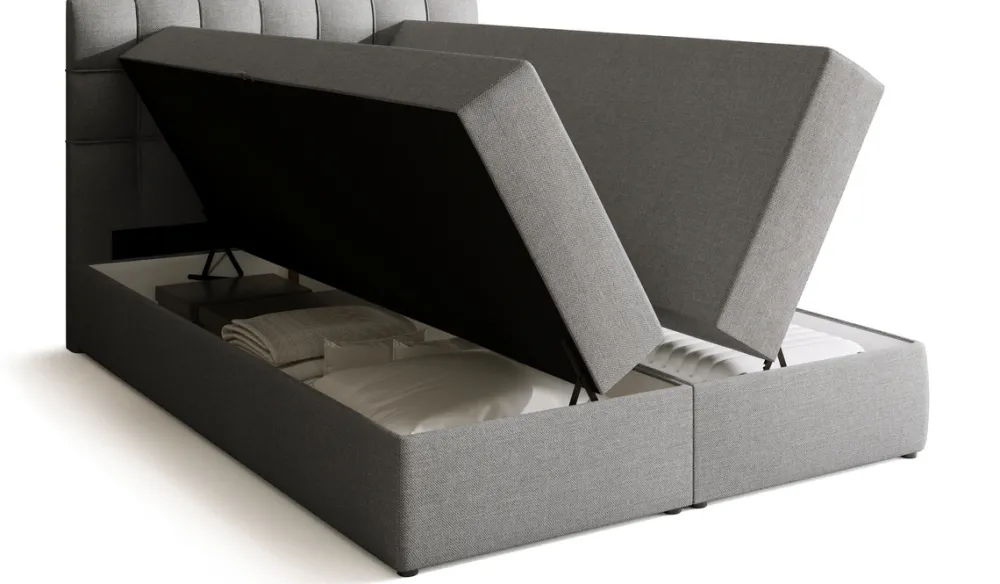 Łóżko kontynentalne do sypialni posiada dwa pojemniki na pościel, które pozwalają na przechowanie pościeli i nie tylko. Automat sprężynowy wspomaga otwieranie pojemnika, co czyni dostęp do jego zawartości prostym i komfortowym.
