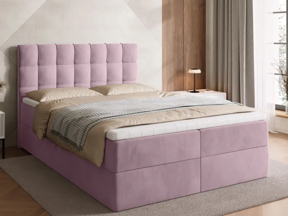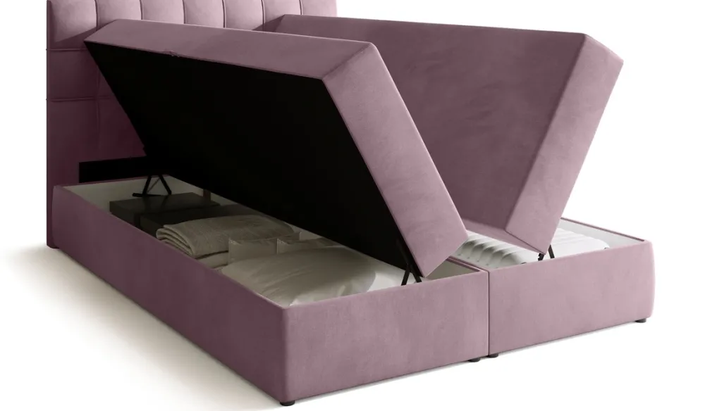 Łóżko kontynentalne do sypialni posiada dwa pojemniki na pościel, które pozwalają na przechowanie pościeli i nie tylko. Automat sprężynowy wspomaga otwieranie pojemnika, co czyni dostęp do jego zawartości prostym i komfortowym.