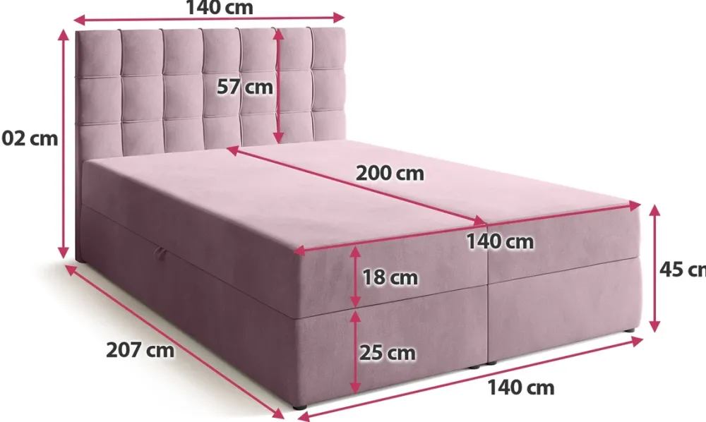 - Łóżko kontynentalne 140×200 DETROIT wykończono welurową tkaniną Kronos, która charakteryzuje się efektem pisania. Materac łózka wykonano na bazie sprężyn bonell oraz pianki T-30. Za dostęp do pojemnika odpowiada sprężynowy automat rozkładania.