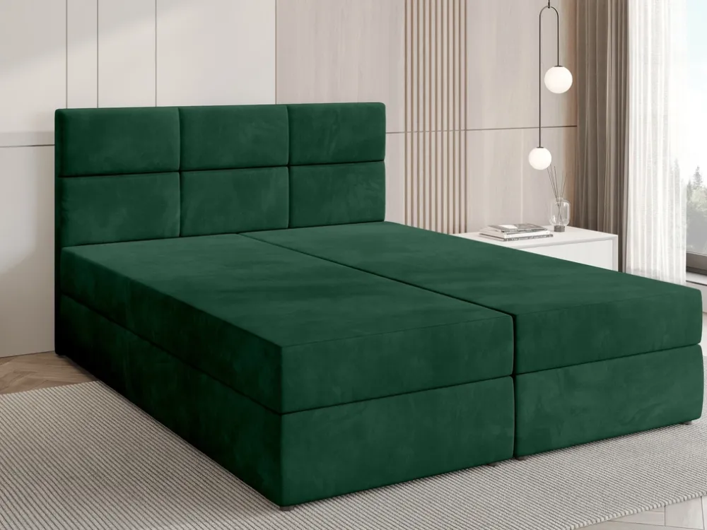 Łóżko kontynentalne 140×200 cm BOSTON to idealne połączenie nowoczesności i komfortu dla osób, które cenią sobie wygodę oraz solidne i estetyczne wykonanie. Welurowe łóżko kontynentalne do sypialni posiada zagłówek z ozdobnymi przeszyciami tworzącymi sześć prostokątów.