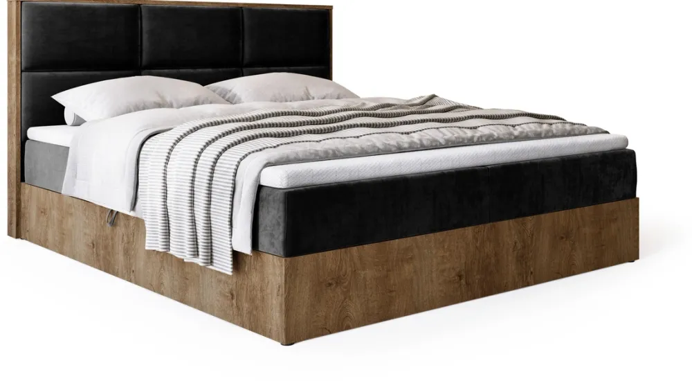 - Łóżko przestawione na wizualizacji zostało wykonane w kolorze Dąb Lefkas oraz tkaninie Kronos 07.