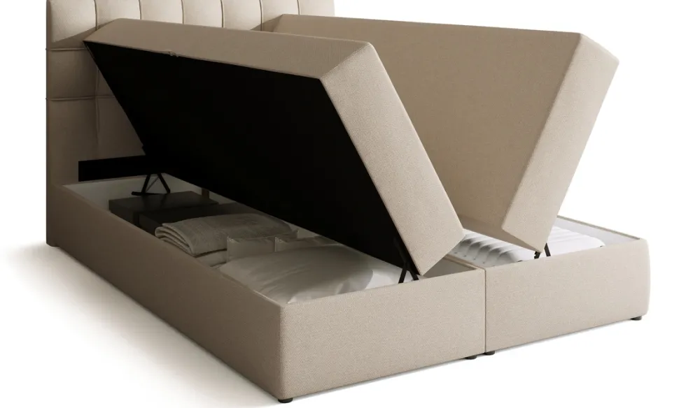 Pojemnik na pościel posiada dwie głębokie komory, do których dostęp ułatwia automat sprężynowy. Podczas otwierania pojemnika na pościel, automat przejmuje na siebie ciężar powierzchni spania oraz wspomaga rozkładanie, dzięki czemu dostęp do zawartości pojemnika na pościel jest niezwykle prosty i przyjemny.