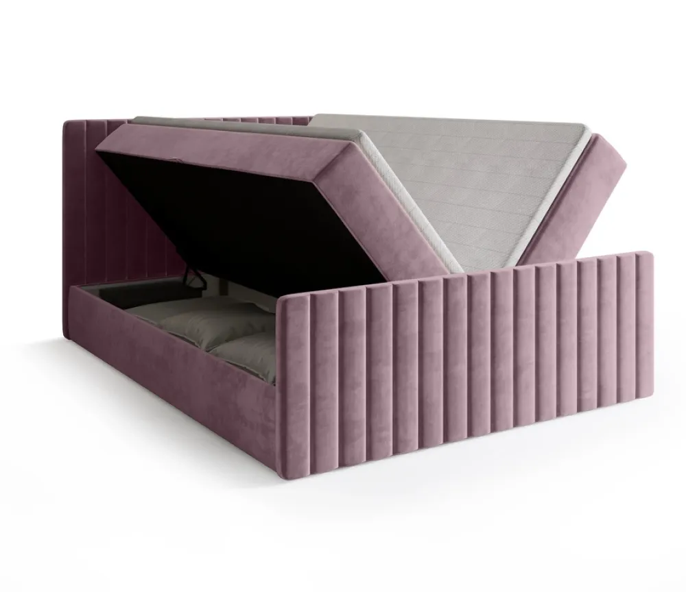 - Różowe łóżko kontynentalne DREAM DUO 140×200 cm obite welurową tkaniną Kronos 27. Wyposażone w materac ze sprężynami bonell, dwoma pojemnikami i tapicerowanym zagłówkiem. Komfortowy sen i elegancja w Twojej sypialni – idealne do nowoczesnych wnętrz.