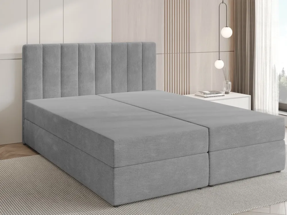 Łóżko kontynentalne 140×200 cm DENVER to propozycja dla osób poszukujących komfortowego, oraz nowoczesnego łóżka. Łóżko kontynentalne z pojemnikiem zostało wyposażone w tapicerowany zagłówek we wzorze szerokich słupków, które doskonale zdobią pomieszczenie swą prostotą.