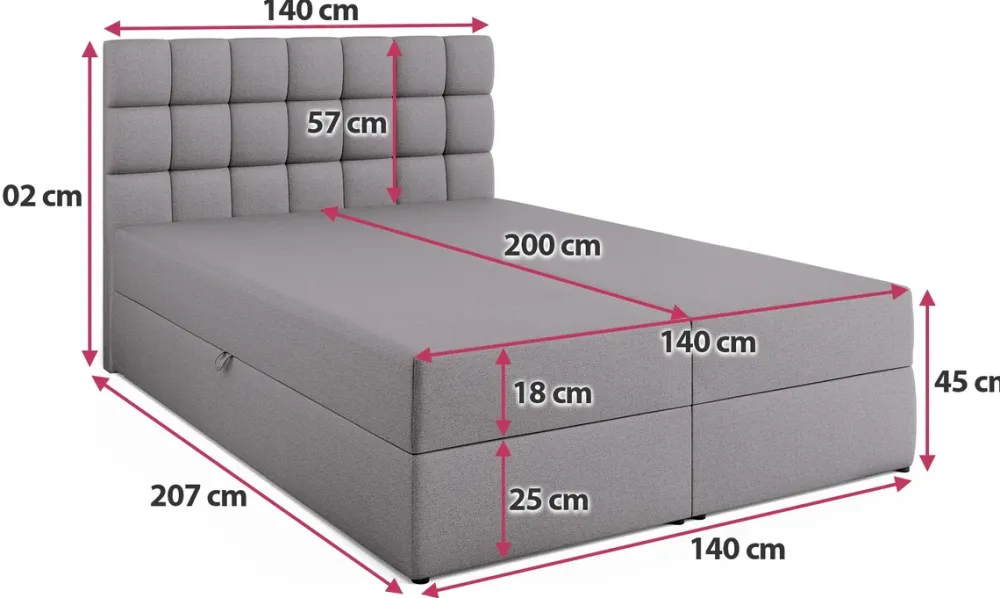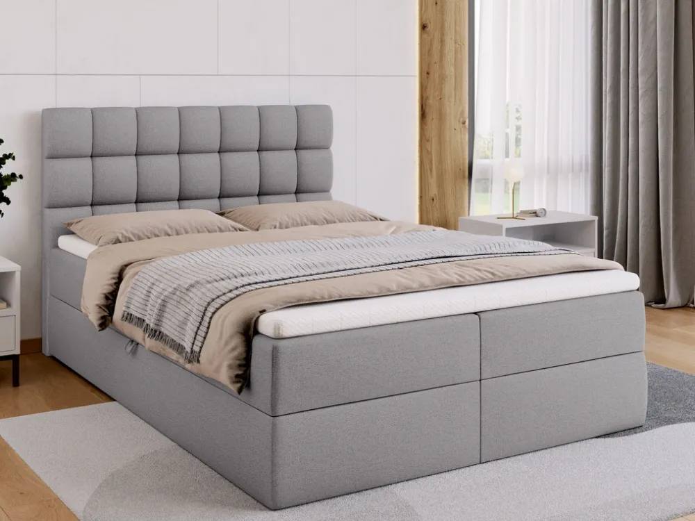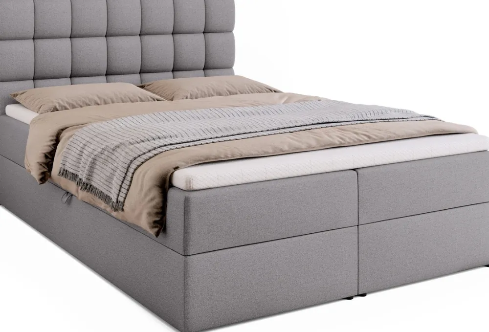 Zadbaj o wyjątkowy komfort snu i stylowy wygląd swojej sypialni dzięki łóżku kontynentalnemu o powierzchni spania 140×200 cm. To idealny wybór dla osób ceniących sobie wygodę oraz praktyczne rozwiązania. Zastosowanie sprężyn bonell w połączeniu z pianką PUR zapewnia odpowiednie podparcie dla ciała, a dwa pojemniki na pościel z wygodnym, sprężynowym automatem rozkładania ułatwiają codzienne użytkowanie.