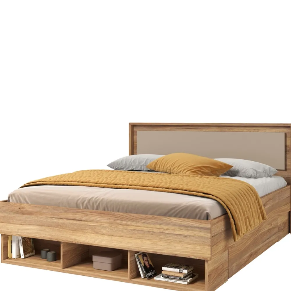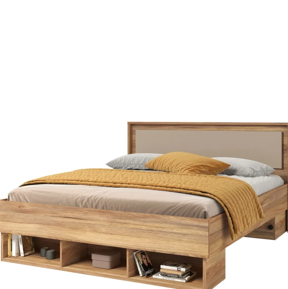- Łóżko IMPRESSIO 160×200 w dekorze dąb mauvella i congo to praktyczne rozwiązanie do nowoczesnej sypialni. Wysokie wezgłowie z kontrastowym panelem nadaje meblowi charakteru, a trzy otwarte półki u podstawy zapewniają dodatkowe miejsce na przechowywanie.