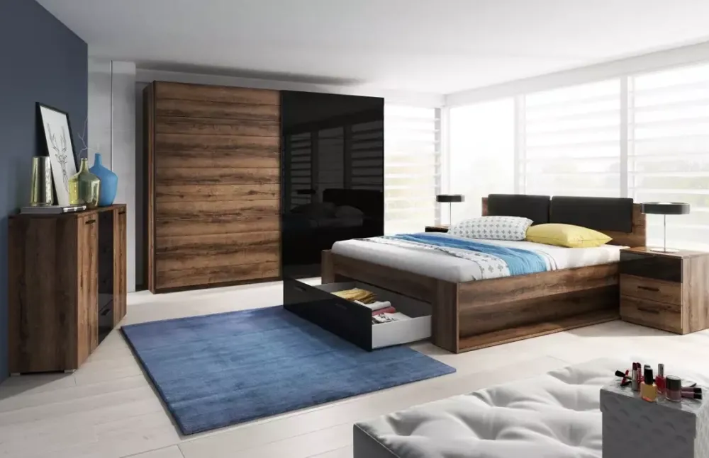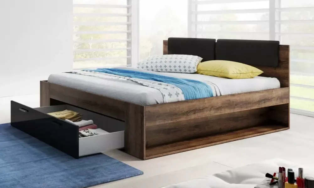 Łoże dwuosobowe z pojemnikiem na pościel w formie szuflady