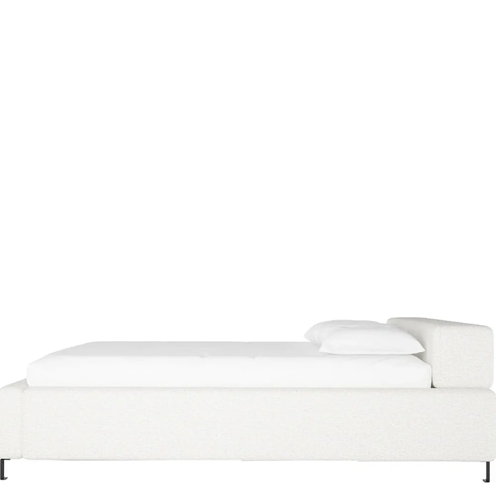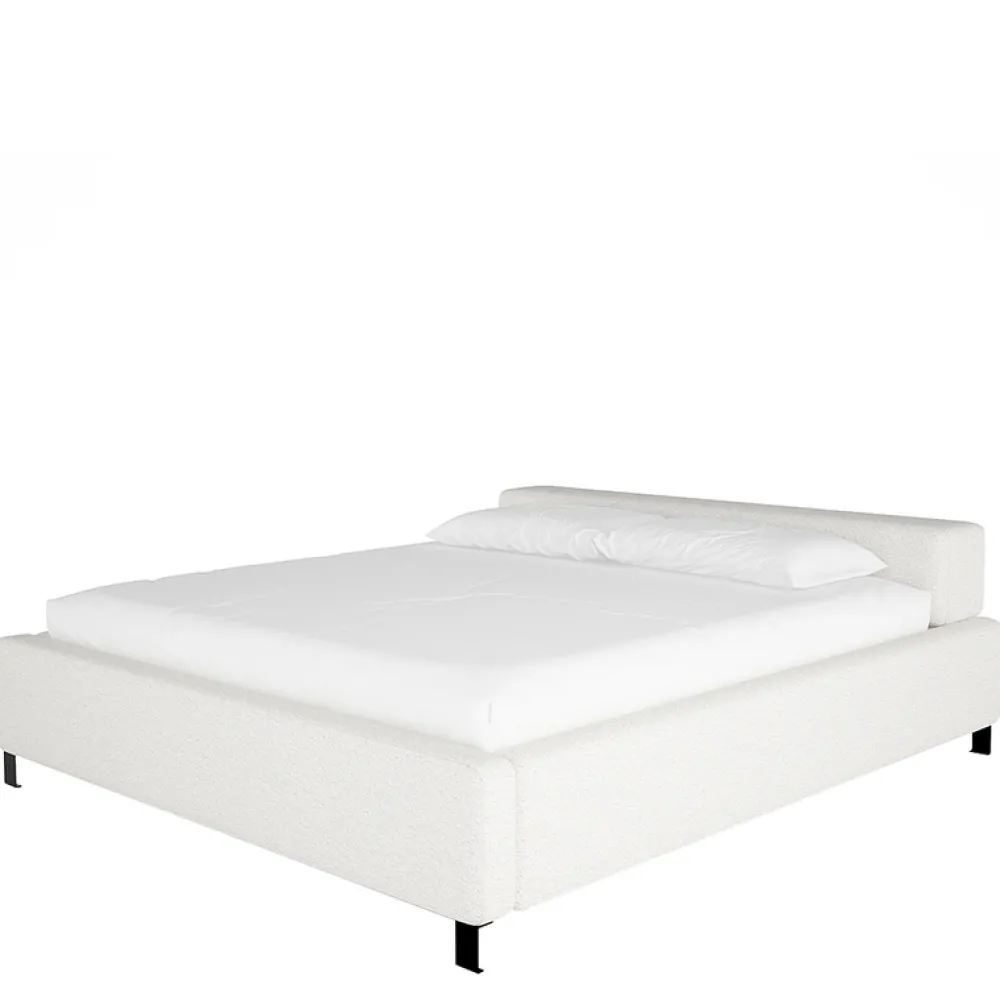 Podkreślając swoje nowoczesne kształty, łóżko ma czarne, metalowe nóżki o wysokości 10 cm, które dodają mu lekkości i subtelnego wdzięku. Niski profil dodaje przestrzeni wizualnej lekkości, a jednocześnie zapewnia stabilność i trwałość.