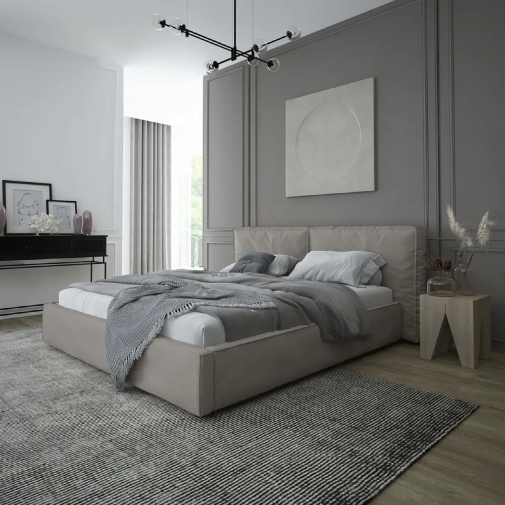 Łóżko tapicerowane PALISE to propozycja dla osób poszukujących nowocześnie wyglądającego łóżka, które dzięki swojej stylistyce zdobi pomieszczenie, oraz nadaje mu luksusowego charakteru. Łóżko zostało wyposażone w miękki zagłówek w formie dwóch poduch, oraz praktyczny pojemnik na pościel, dzięki któremu zyskasz szybki i prosty dostęp do najpotrzebniejszych akcesoriów sypialnianych.