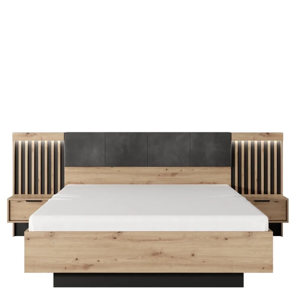 Nowoczesne łóżko wykonane jest z wysokiej jakości materiałów, które zapewniają trwałość i odporność na codzienne użytkowanie. Korpus w kolorze dąb artisan jest nie tylko stylowy, ale także niezwykle trwały, natomiast antracytowe detale dodają całej konstrukcji współczesnej finezji.