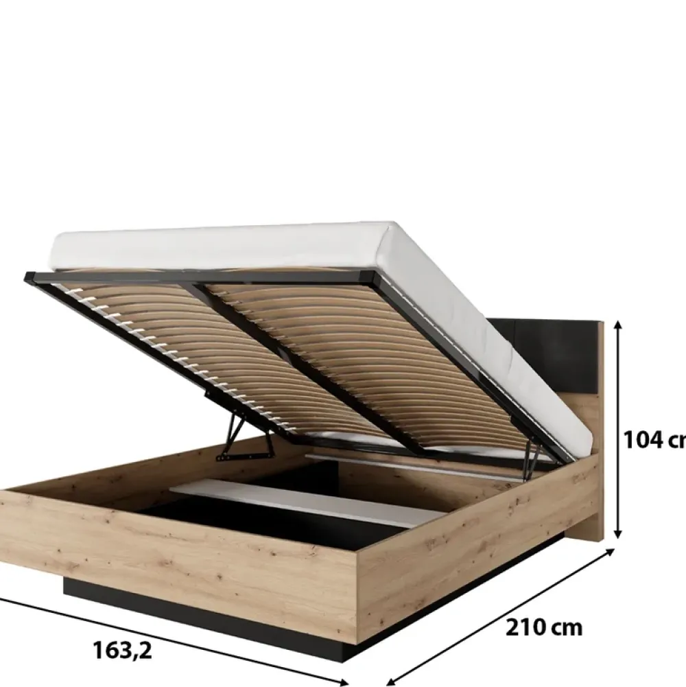 - Zanurz się w komfort nowoczesnego łóżka TERAMO o kolorach dębu artisan i antracytu. Eleganckie, tapicerowane zagłowie dodaje charakteru, a praktyczny pojemnik na pościel sprytnie ukrywa chaos. Idealne do każdej, nowoczesnej sypialni.