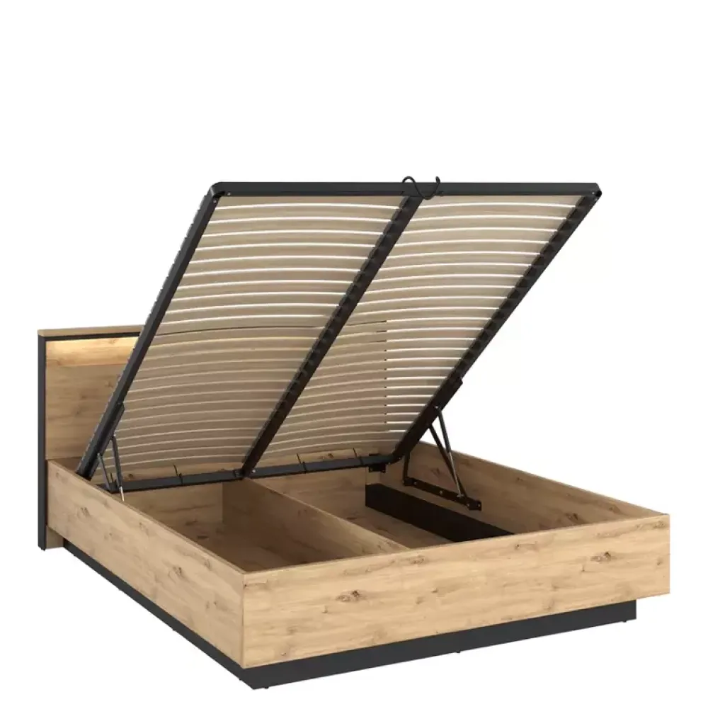- Łóżko zostało wyposażone w metalowy stelaż z podnośnikami gazowymi znacznie ułatwiającymi dostęp do pojemnika na pościel.