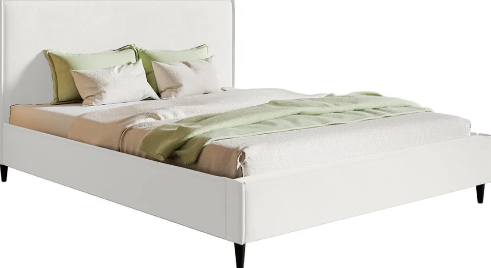 - Łóżko tapicerowane 160×200 cm EDAN posiada stelaż złożony z brzozowych listew. Wysokie nóżki łóżka pozwalają na swobodną pracę odkurzaczy samojezdnych. Łóżko zostało wykonane w przyjemnej w dotyku, welurowej tkaninie.
