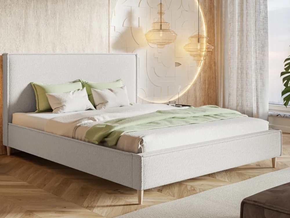 Łóżko tapicerowane o wymiarach 160×200 cm EDAN to elegancki i komfortowy mebel sypialniany, który łączy w sobie funkcjonalność i estetykę. Stelaż tego łóżka składa się z 28 elastycznych listew wykonanych z brzozy, co zapewnia odpowiednie wsparcie dla materaca oraz dostosowuje się do ciężaru ciała, oferując optymalny komfort snu. Wysokie nóżki łóżka nie tylko nadają mu lekkości i nowoczesnego charakteru, ale również ułatwiają utrzymanie czystości pod meblem, zapewniając łatwy dostęp do przestrzeni pod łóżkiem.