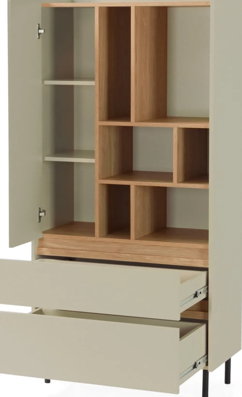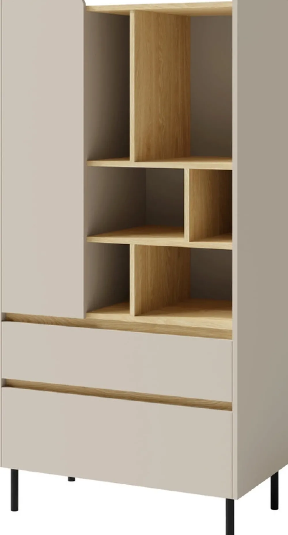 Wybierz spośród dwóch wyjątkowych kolorów: beżu piaskowego, który wprowadza ciepło i spokój, lub głębokiego eukaliptusa, dodającego wnętrzu świeżości i charakteru. Bez względu na odcień, młodzieżowy regał 80 cm LISSARO idealnie wpisze się w nowoczesne aranżacje, stając się nie tylko funkcjonalnym, ale także dekoracyjnym elementem pokoju młodzieżowego.