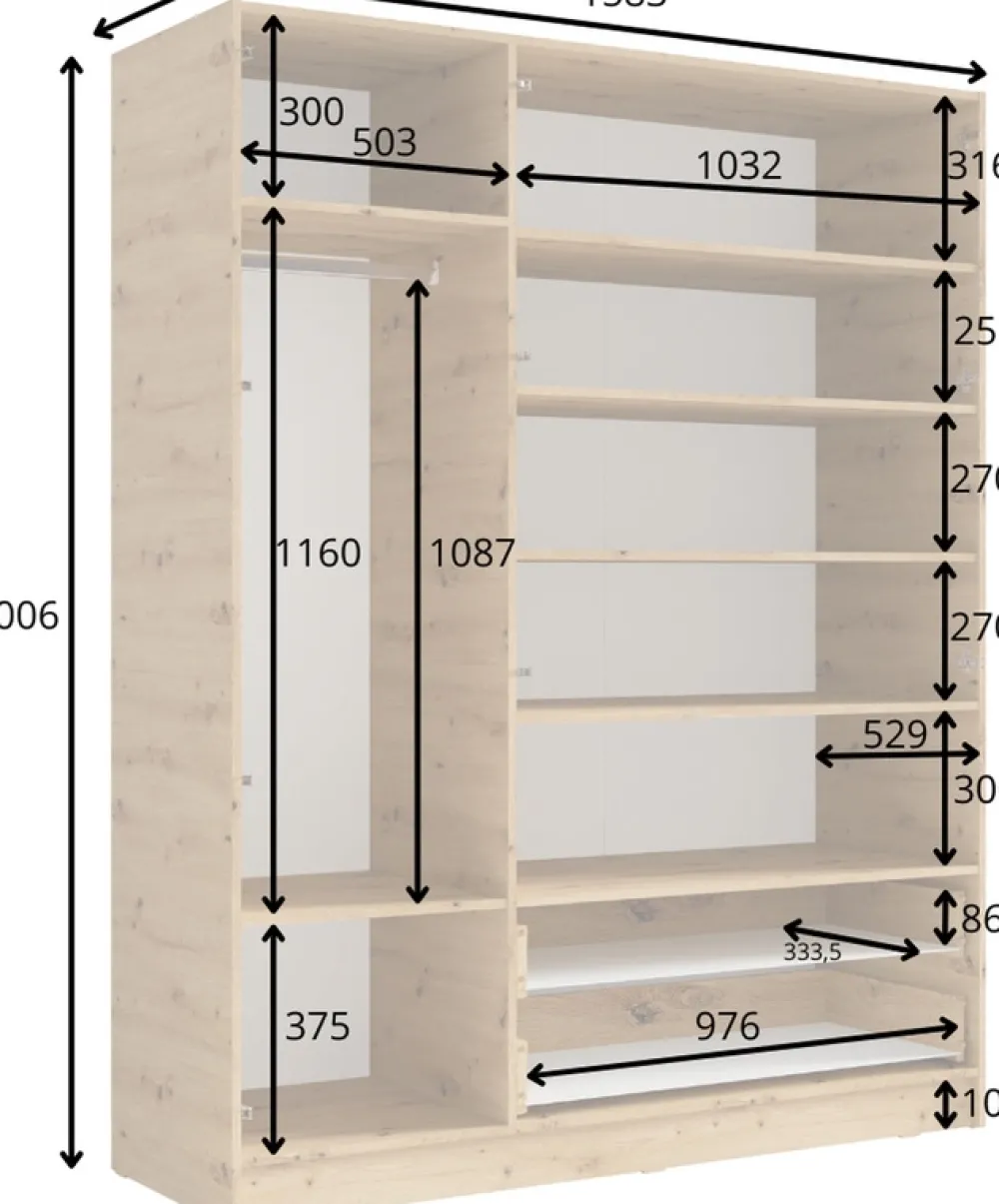 - Wymiary: szerokość 158,3 cm, wysokość 200,6 cm, głębokość 54,9 cm
