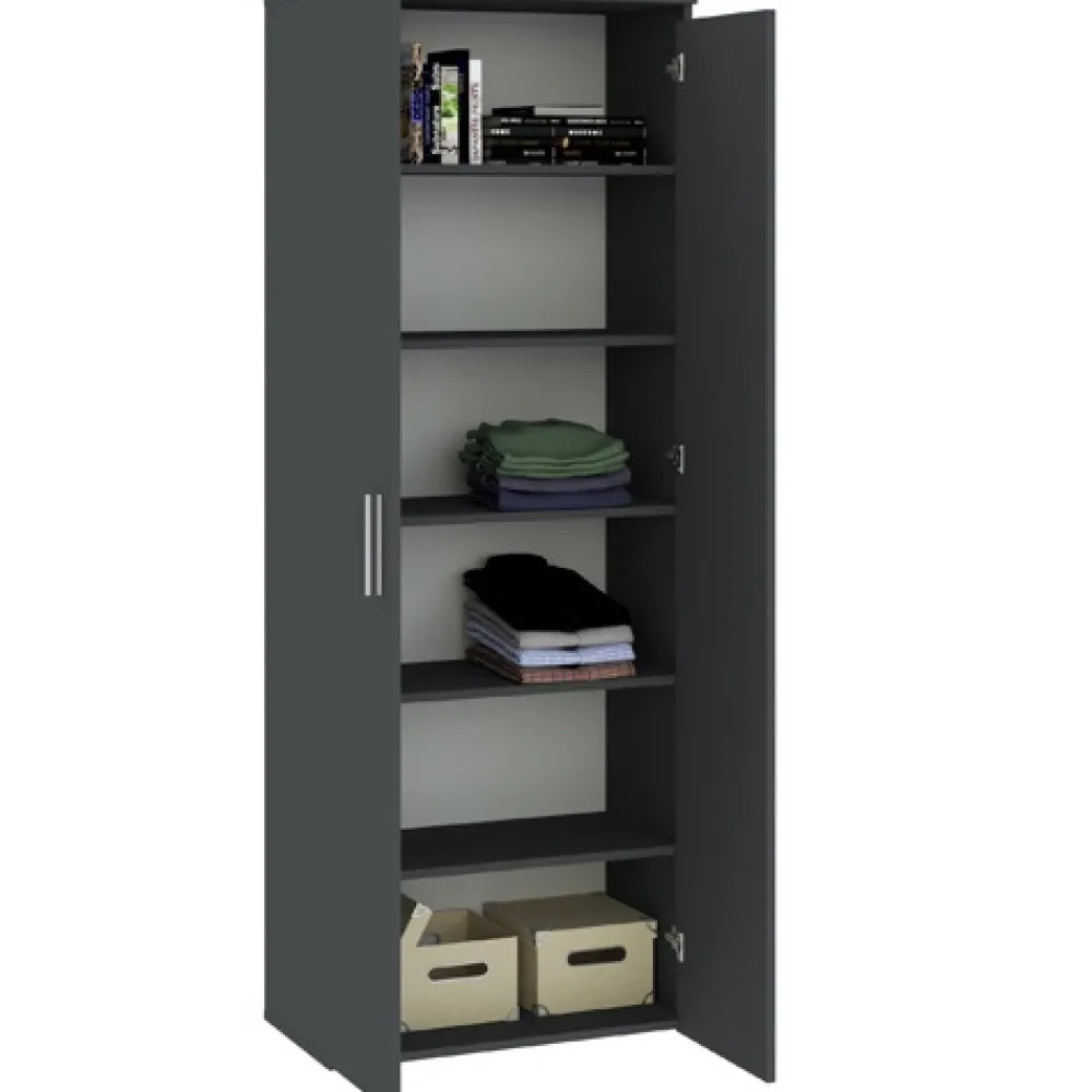 - Dwudrzwiowa konstrukcja z półkami – zapewnia wygodny dostęp do zawartości i umożliwia uporządkowane przechowywanie