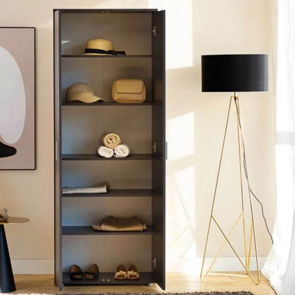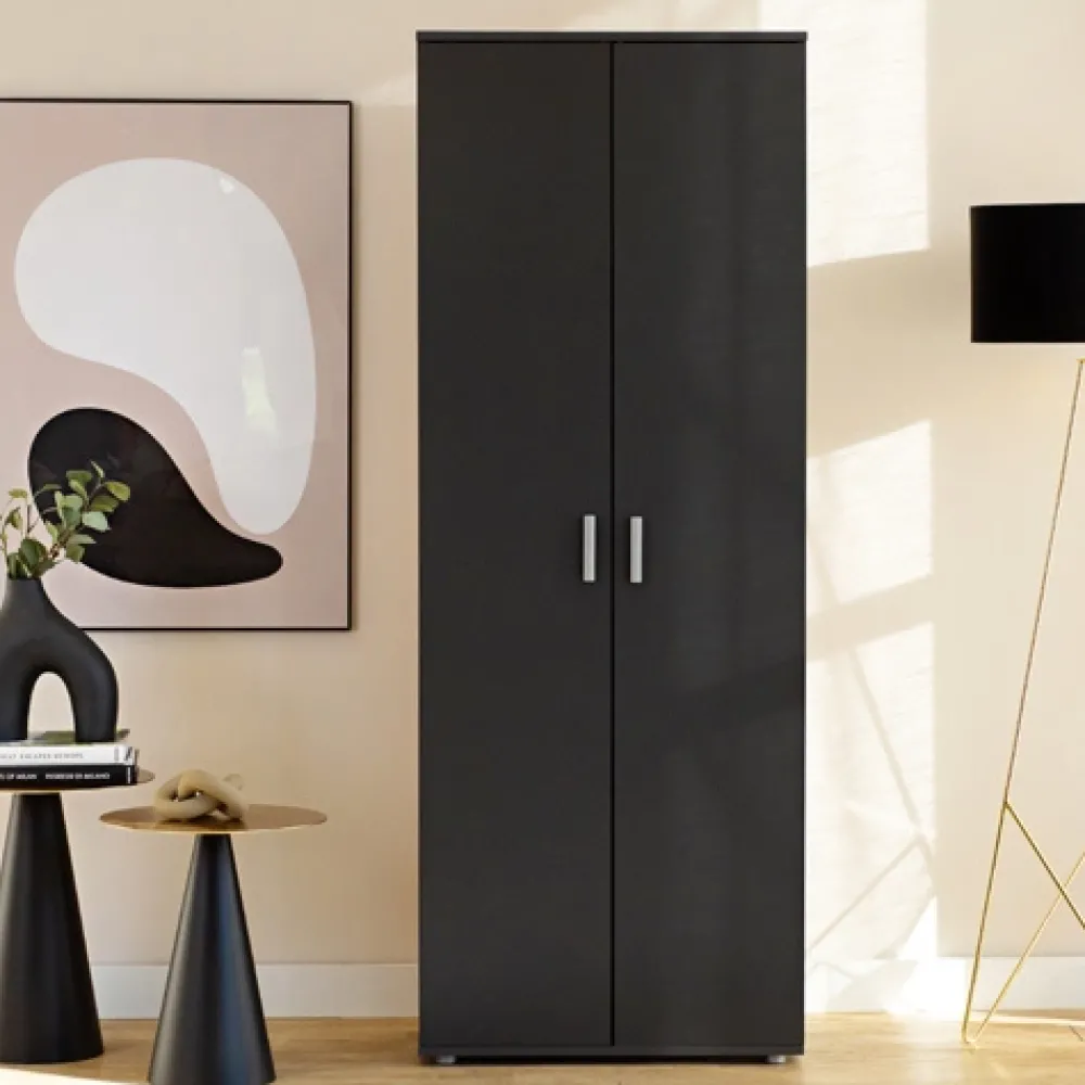 - Szafa do salonu z półkami KONTI w czarnym macie to eleganckie i praktyczne rozwiązanie do małych wnętrz. Smukła sylwetka, pojemne półki i nowoczesny design czynią ją idealną szafą do sypialni, pokoju młodzieżowego lub salonu.