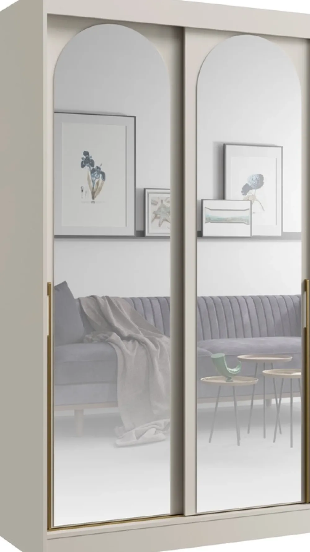 Szafa MORIN to propozycja dla tych, którzy cenią minimalistyczny design połączony z funkcjonalnością. Kaszmirowe fronty z efektownymi lustrami o łukowym wykończeniu dodają wnętrzu przestronności i światła, a system przesuwny zapewnia wygodne użytkowanie nawet w mniejszych pomieszczeniach. Idealna do sypialni, garderoby czy przedpokoju – wszędzie tam, gdzie liczy się styl i porządek.